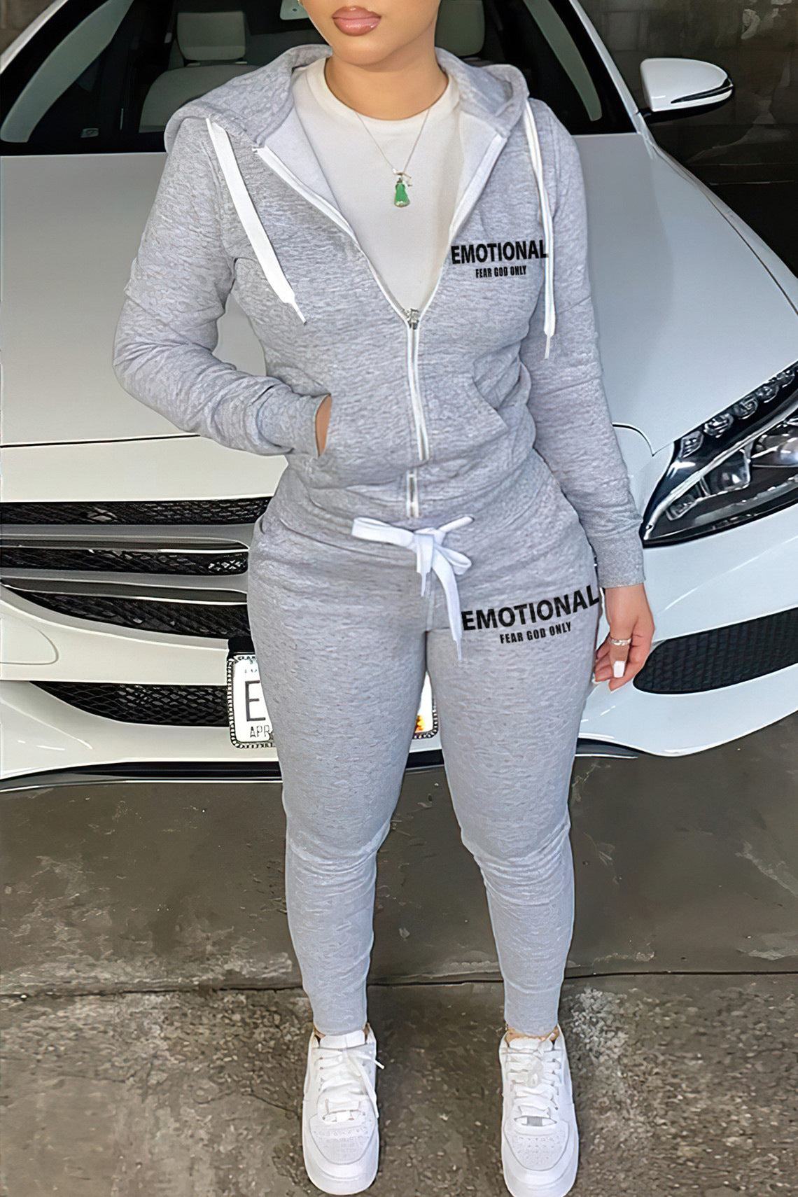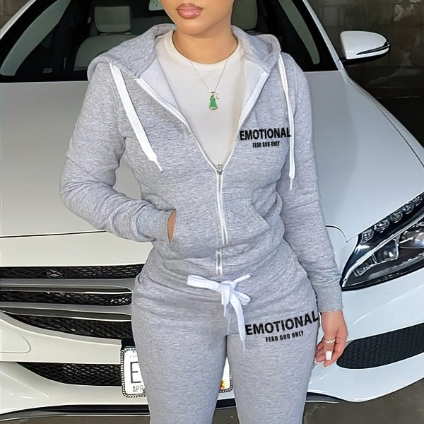 Autumn And Winter Zipper Printed Two-piece Suit