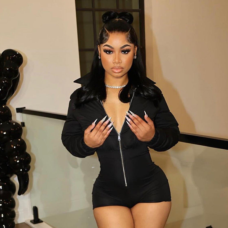 Cotton-padded Stretch Tight Jumpsuit Slim Short Jacket