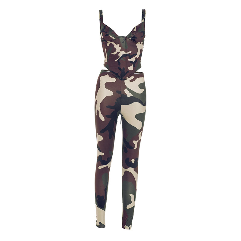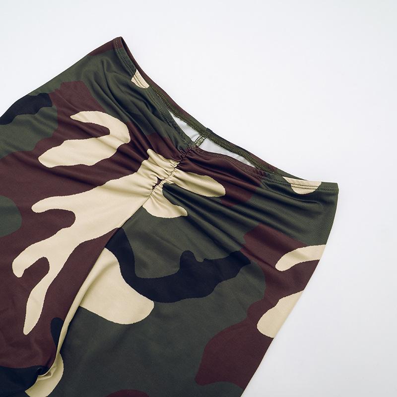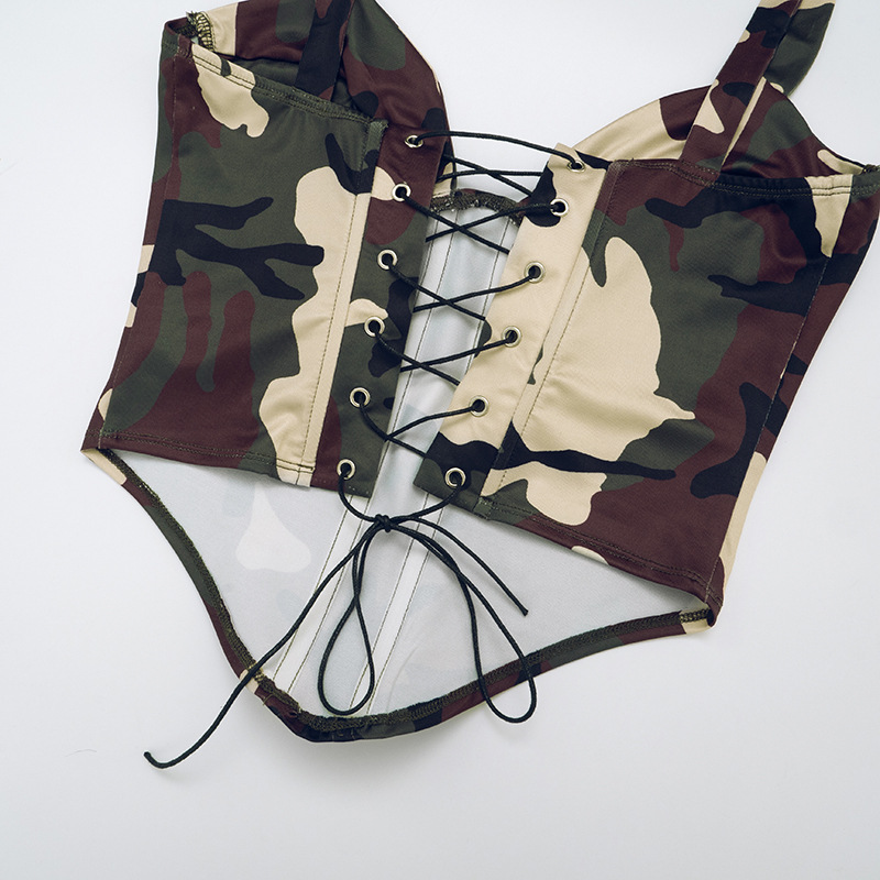 Camouflage Printed Back Lace Up Short Sling Vest Two-piece Set