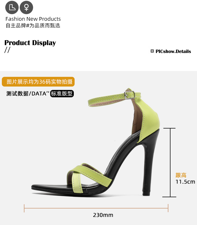 Ultra-high Heel Color Matching Pointed Toe Strap Heel Wrapped Stiletto Heel Sandals