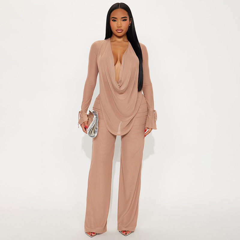 Women's Fashion Sexy Lace-up Long-sleeved Top Slim Trousers Suit